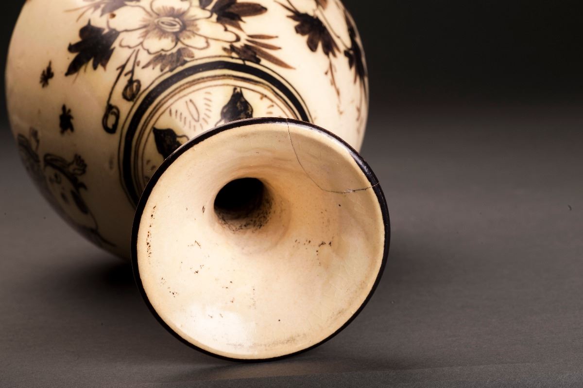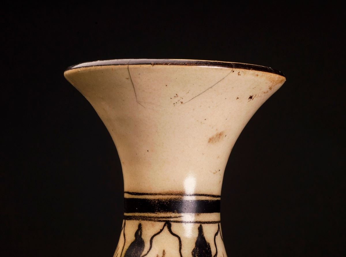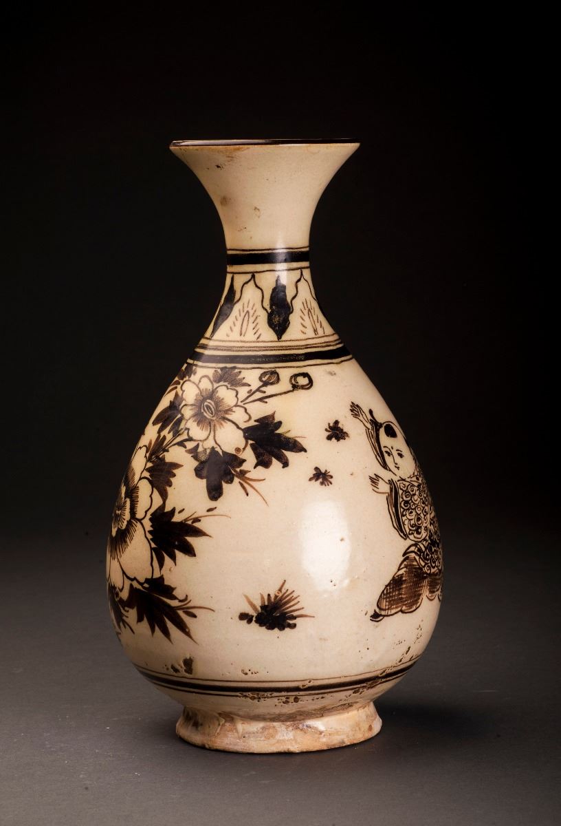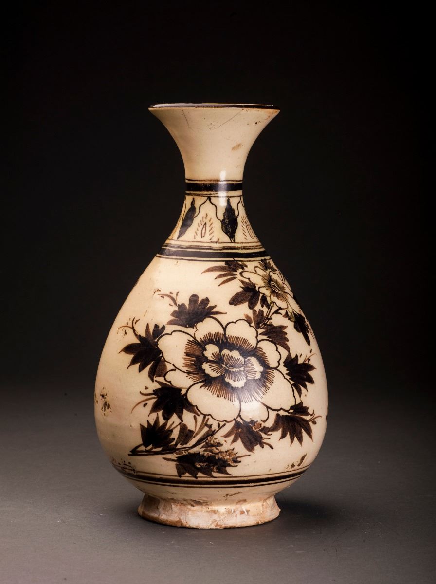 This Porcelain Vase Glazed In Cizhou-ware Style, With The Alternative Light Brown Tone Throughout. The Finely Potted Body Raised To The Rather Thin Neck, Which Connected To The Slightly Flared Mouth At The Top. PaintedWith The Blooming Lotus In The Middle And Amidst With Other Flower Patterns.