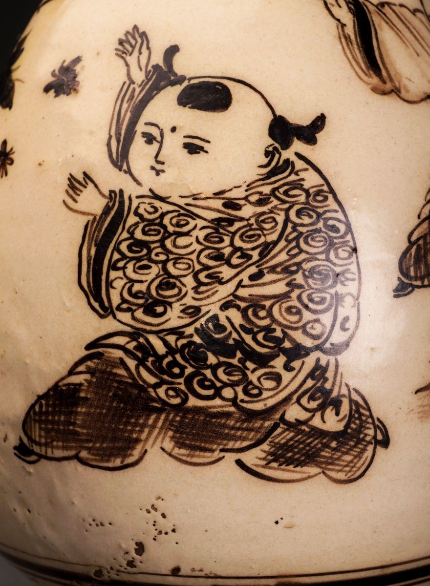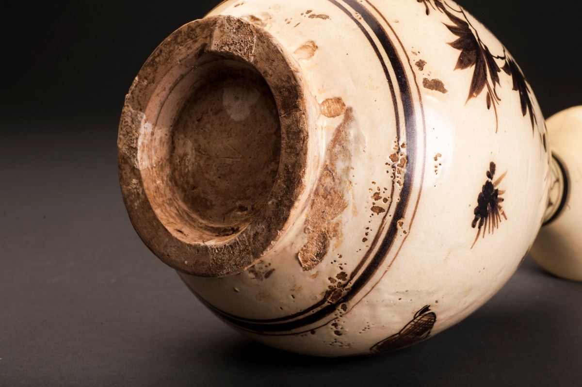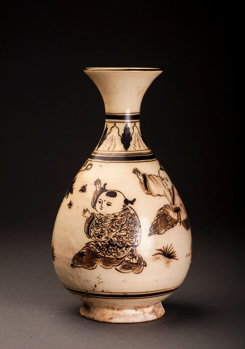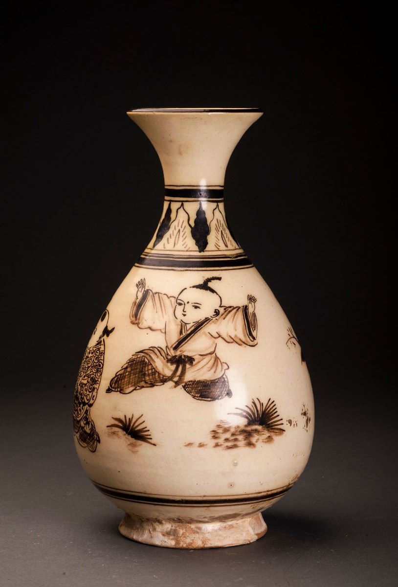 This Porcelain Vase Glazed In Cizhou-ware Style, With The Alternative Light Brown Tone Throughout. The Finely Potted Body Raised To The Rather Thin Neck, Which Connected To The Slightly Flared Mouth At The Top. PaintedWith The Blooming Lotus In The Middle And Amidst With Other Flower Patterns.