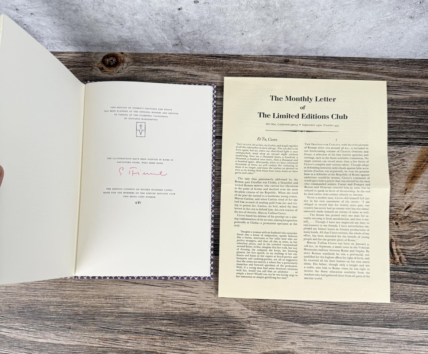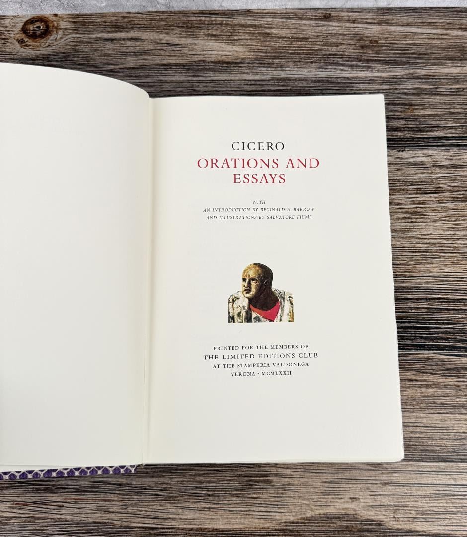 Cicero, 1972. Limited Editions Club481 of 1500. Provenance- from the estate of former Ford Motor Company CEO Donald E. Petersen.