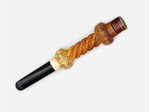 Carved meerschaum, twisted decoration, ebony mouthpiece. Original case. Austrian, late 19th century. Size: 12 cm