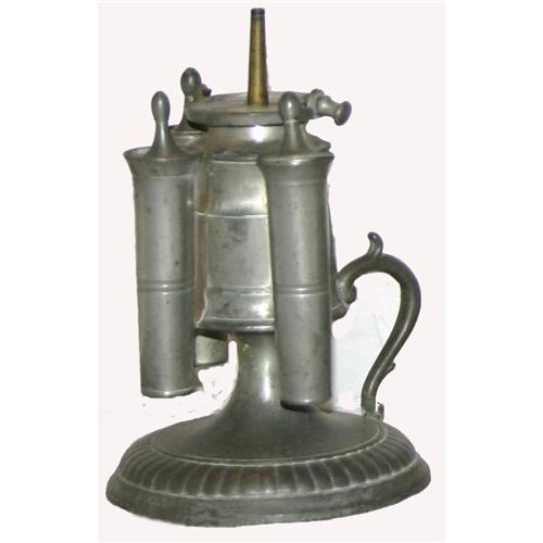 Cigar Lighter with three wands, pewter looking metal. Missing Globe. Approx. 4" D x 6.5" H.