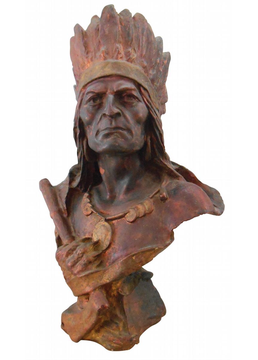 Cigar Store Indian bust w/hatchet, painted chalkware, c.1900, Exc cond, 21.5"H.
