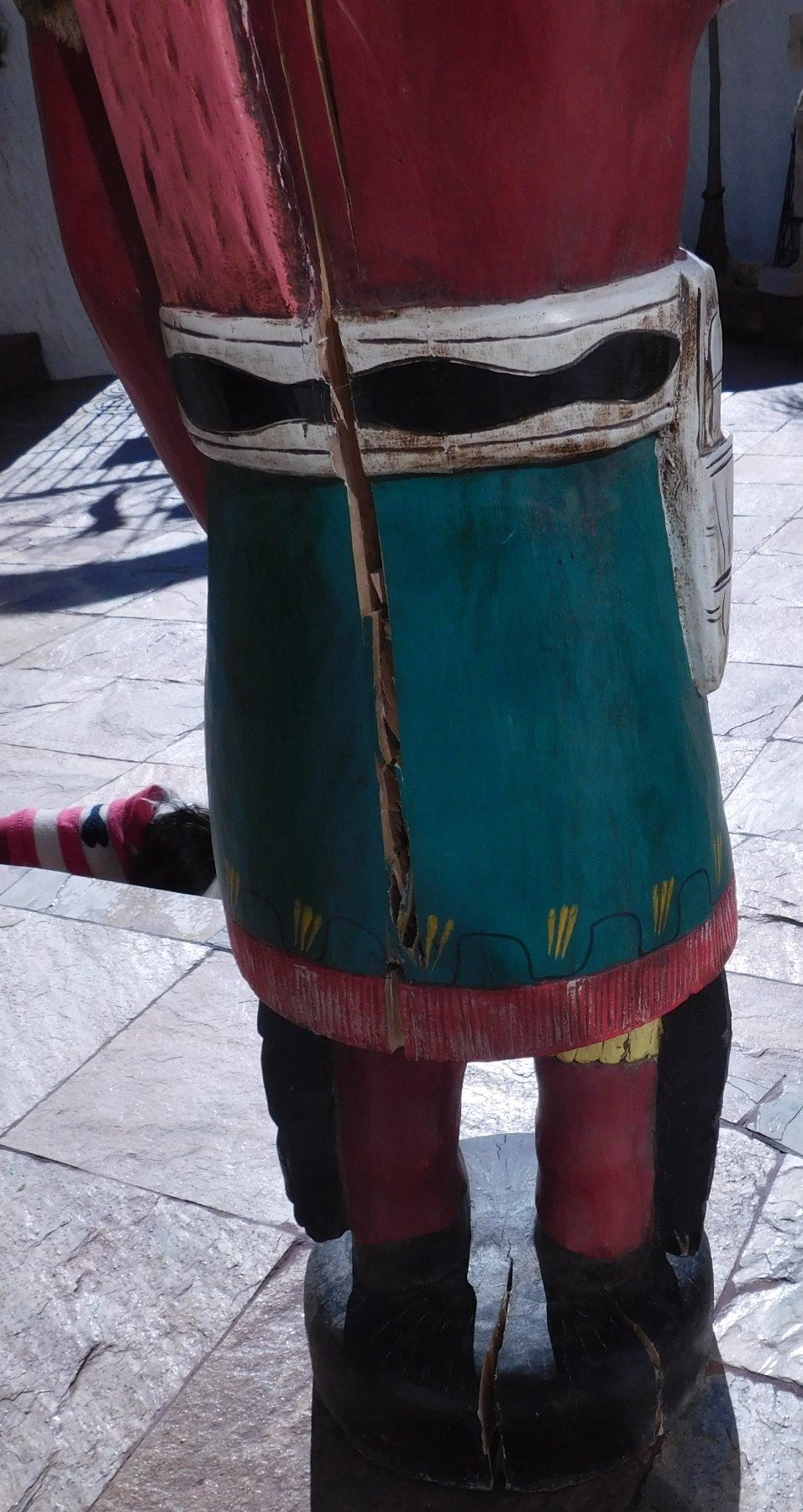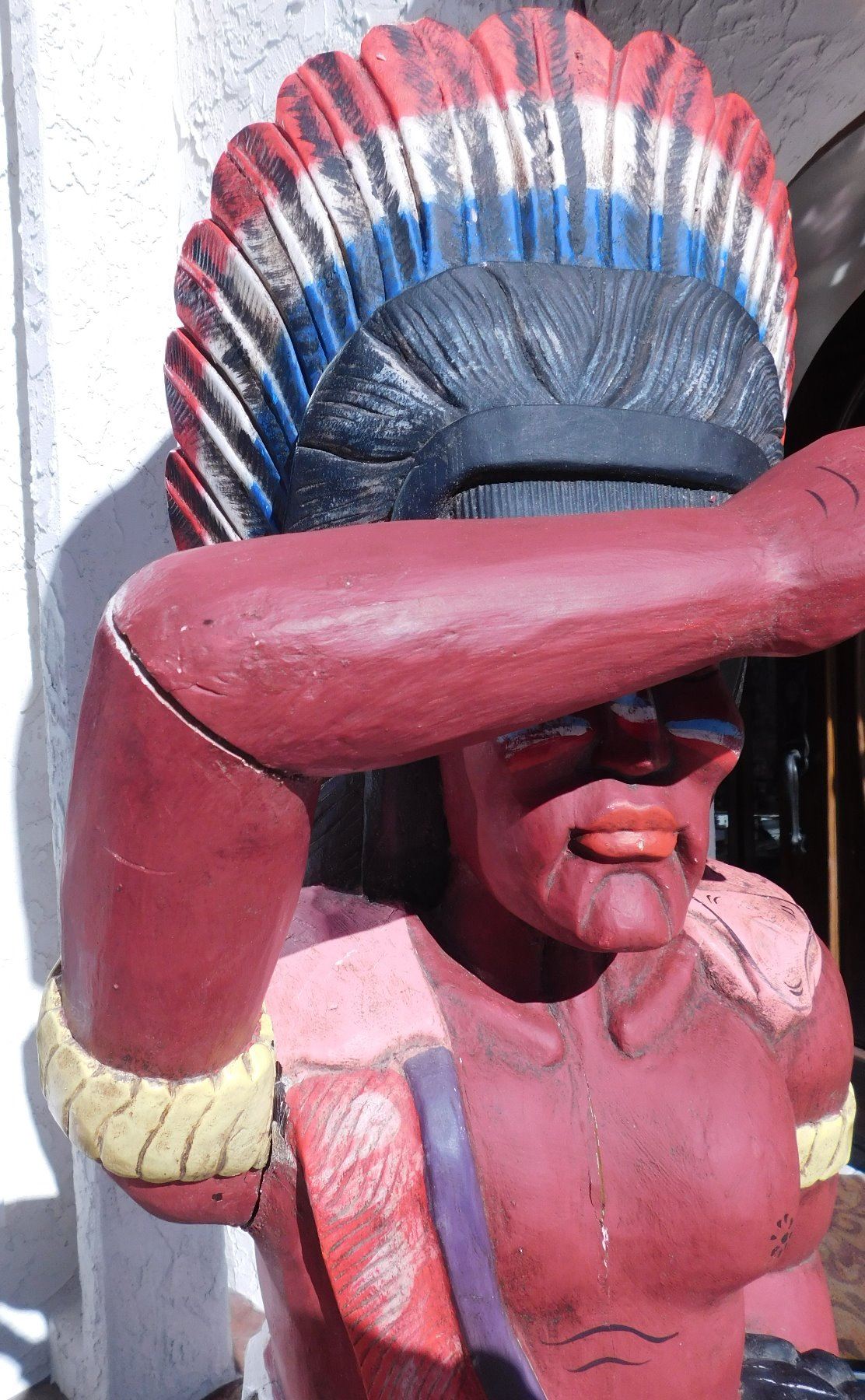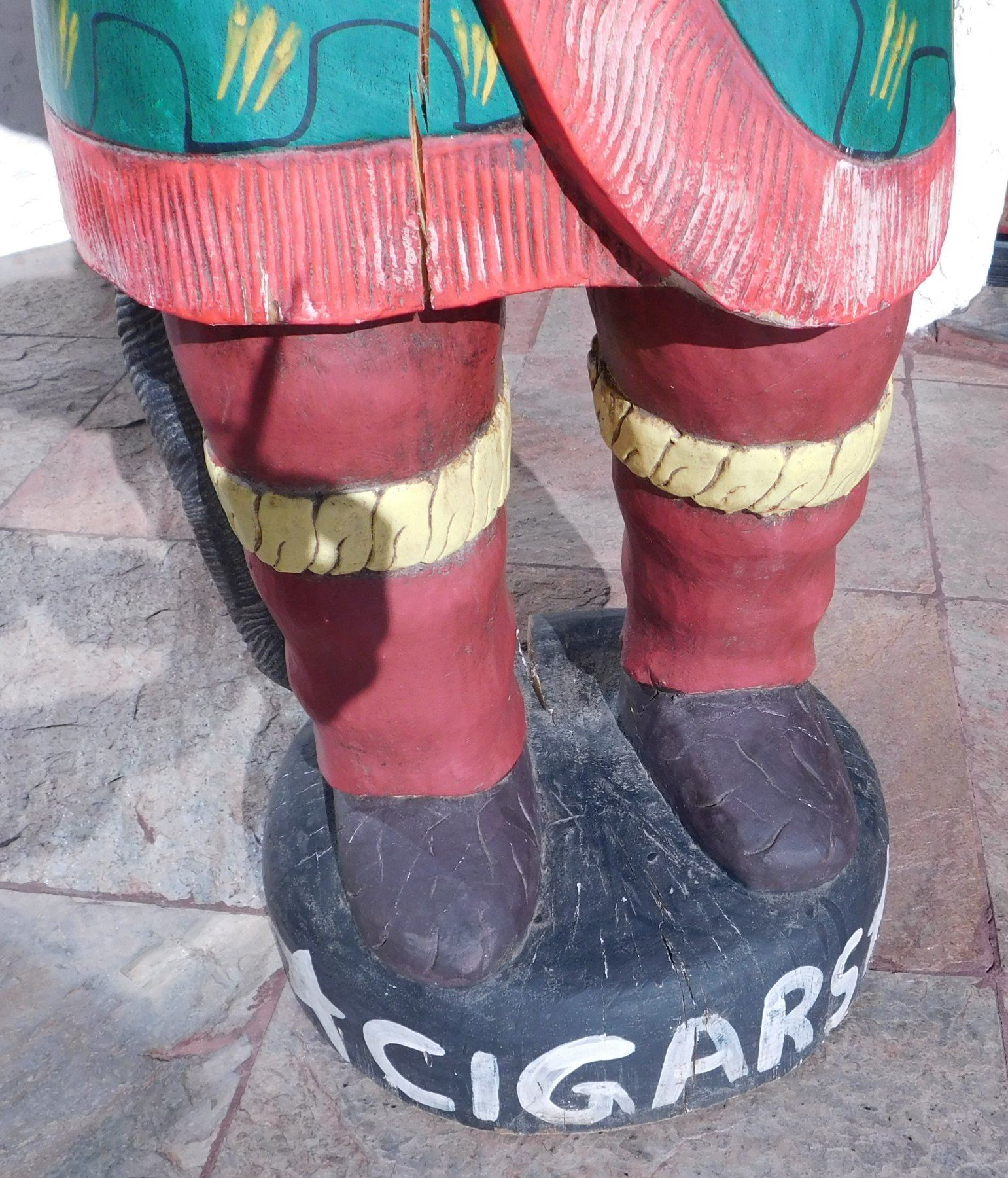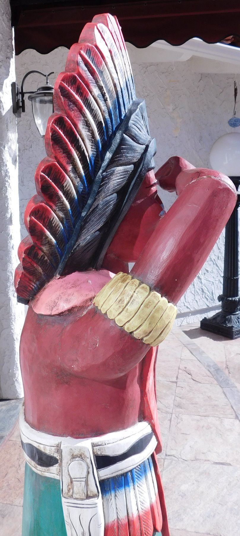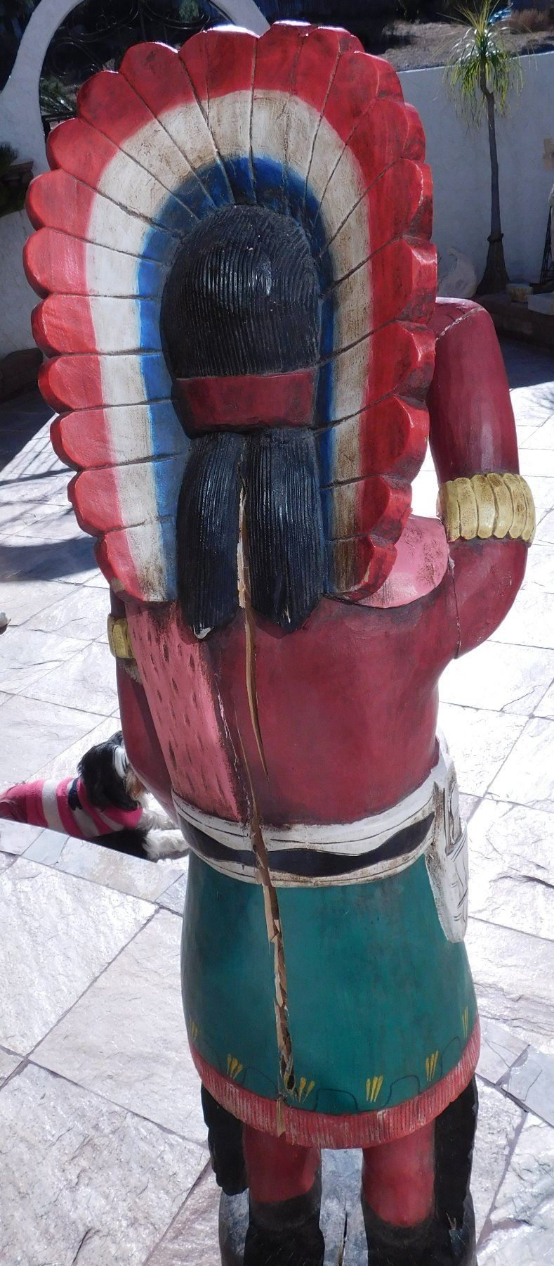 Cigar Store Indian, c. 1950s. Made of wood and paint, the item is 5' tall. Southwest USA. Condition: No known restoration beyond fingers being reglued on hand, see images. Shipping: $100.00 USA estimate only, w/insurance and signature.