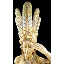 Cigar Store Wooden Indian. 73" Tall Gesso Over Wood. Hand Painted, Some Paint Loss But Fine Condition. Est $5,000 - $6,000