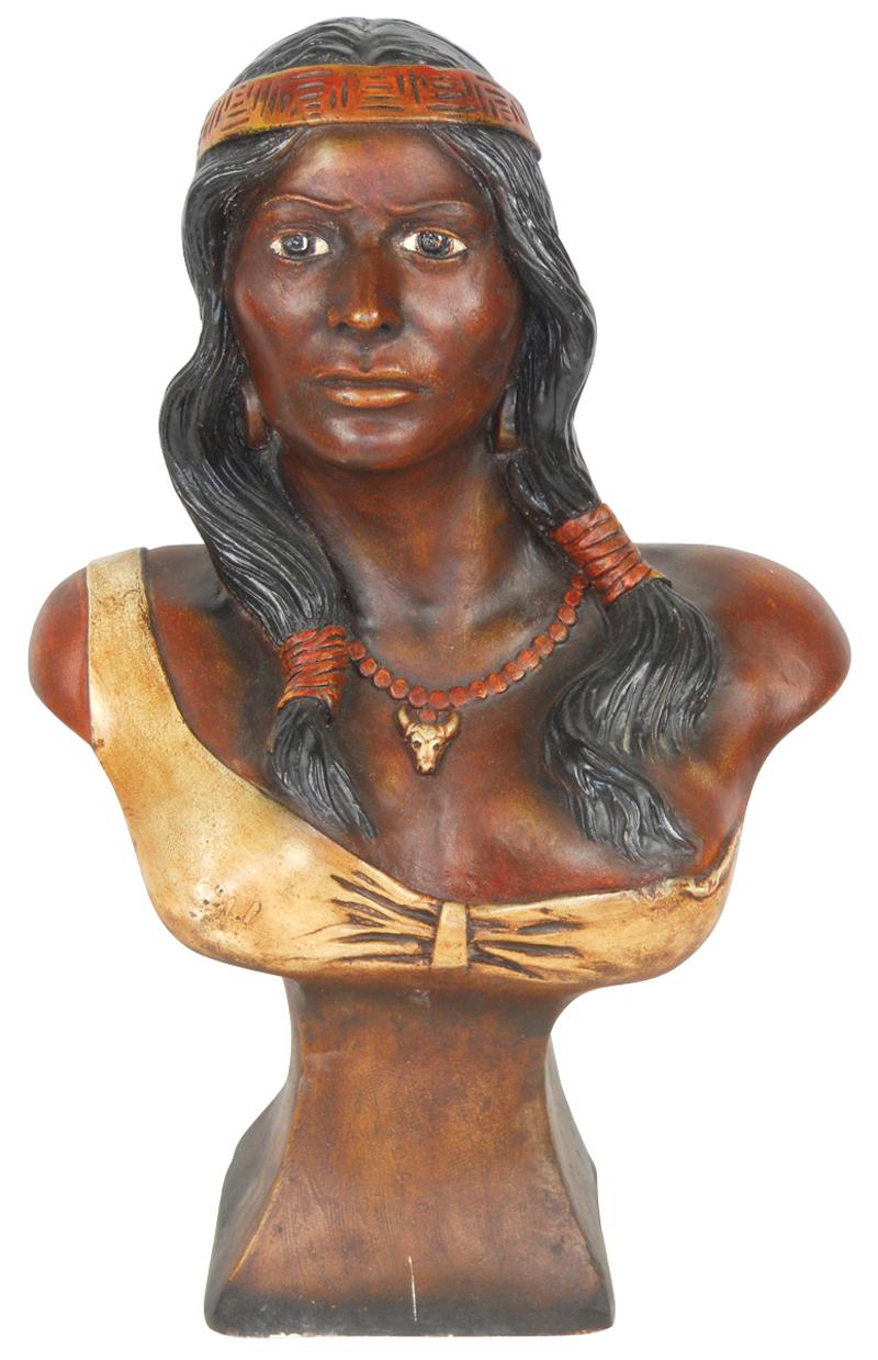 Cigar counter Indian figure, Indian Maiden in low-cut dress, painted chalkware, VG cond, 18.5"H.