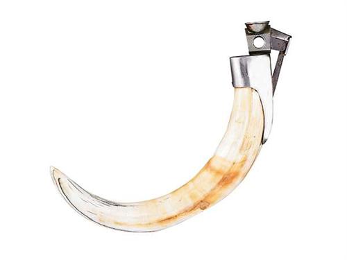 Tusk of wild boar, metal fitting. Engraved date and the initials of the owner: 1916. oct. 18. gr. Sz. Zs. Size: 23 cm