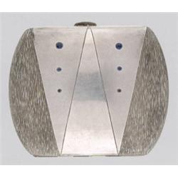 Bécs, 20. sz. eleje, ezüst, "MW" mesterjegy, 6 db zafíros dísszel, belül aranyozva, ajándékozó vésettel, "HB" nemesi monogrammal, dobozában, 95,2 g; 8*10 cm