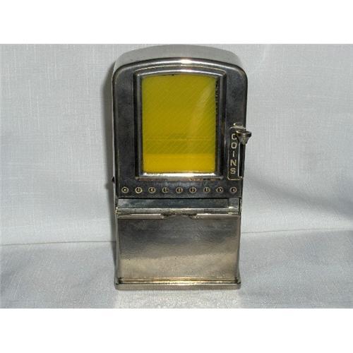 Here is a 1950's era Napco Cigarette 1 cent vending/bank machine. The back of the machine states "Napco Inc. Patented Cleveland 3-Ohio". When a penny is inserted (or not) and push the knob down, a single cigarette is dispensed. The body is chromed metal. The original clear plastic window has been replaced with a yellow one. The back has two sections, one for the coin drop, opened with a screw driver, and one to fill the "machine" with loose regular size cigarettes. Condition is very good, no dents, dings or rust. This is a great display item. A nice addition to any collection. See photos. Have a look at my other items. Thank you for viewing.