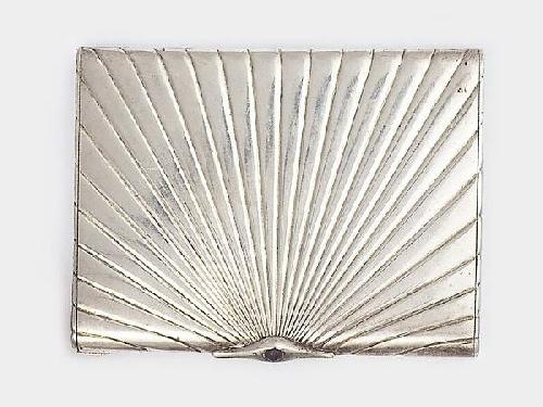 Silver, 152 g, gilt interior. On the surface there is an engraved decoration. Red stone decoration on the press stud. Marked: Austrian, circa 1900 Size: 10 x 7.5 cm