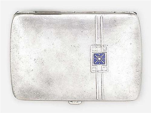 Silver, 80 g, gilt interior, coloured enamel decoration. Marked: 900 fineness, circa 1900, and Hungarian import mark. Size: 8.5 x 6 cm