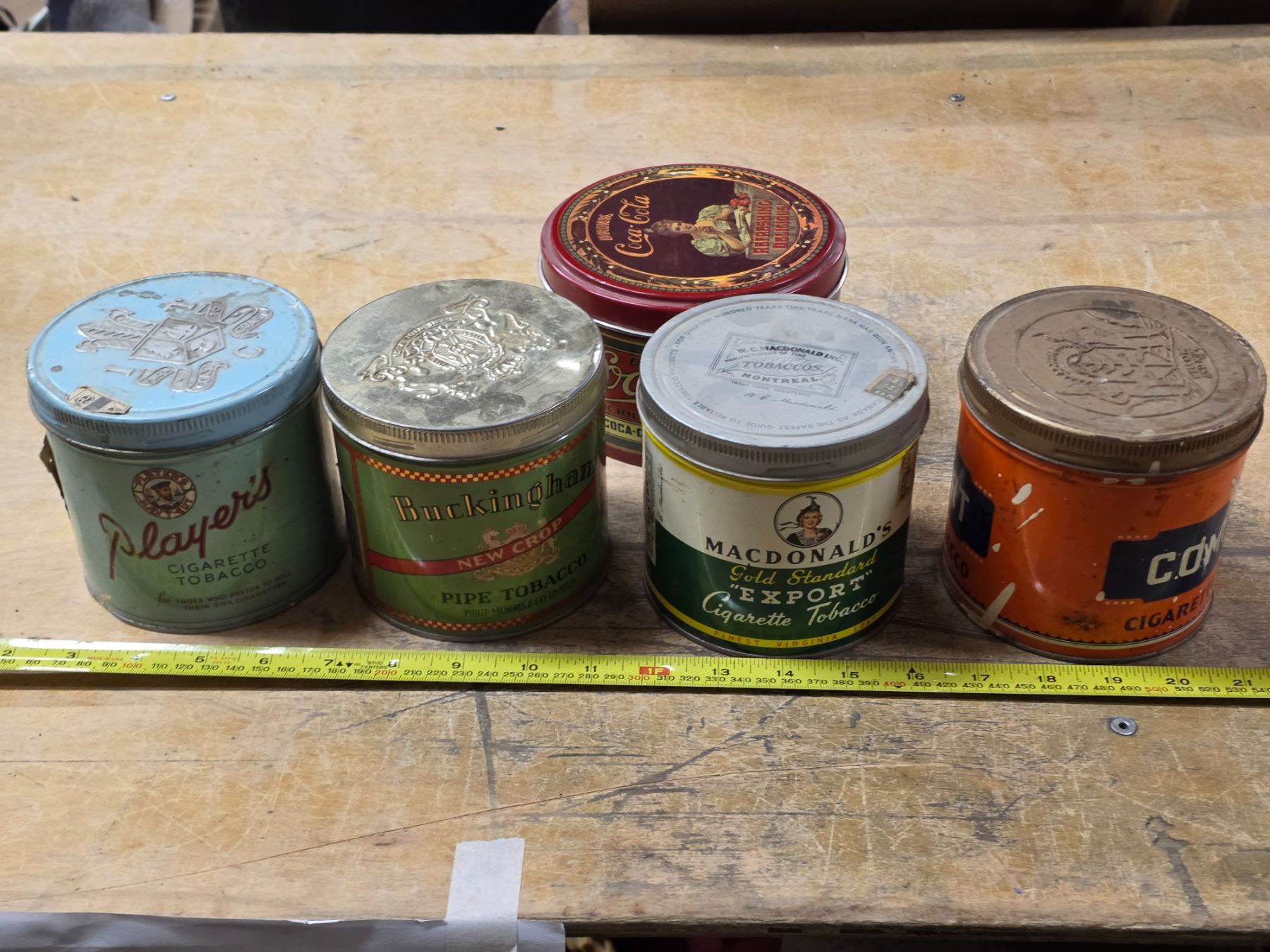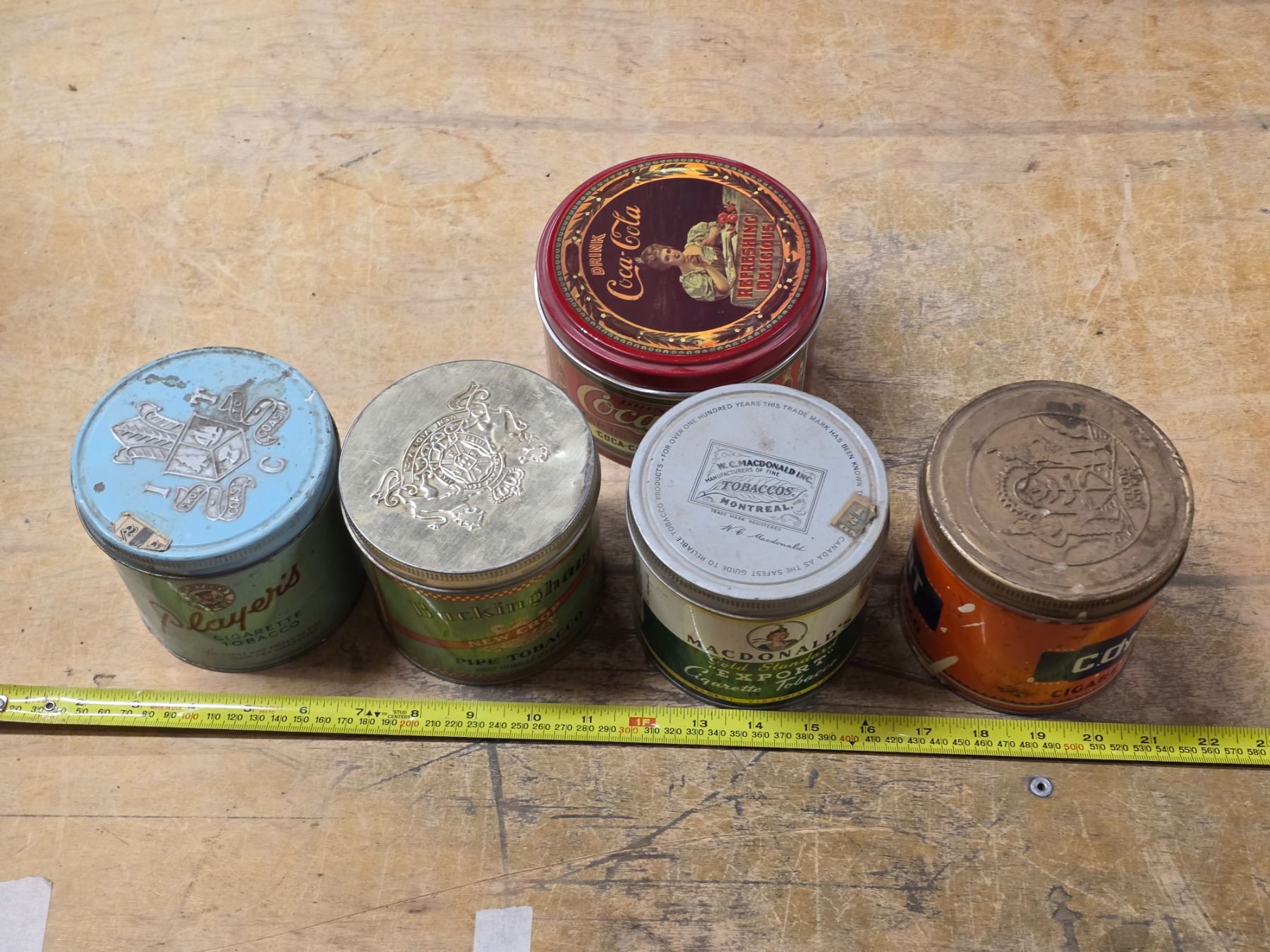 Cigarette, tobacco and coca cola tins