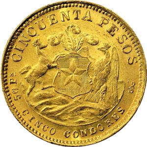 Monete e Medaglie Estere. Cile. 50 pesos 1926. Fr. 55. AU. g. 10.17 qSPL. Titolo 900/000.