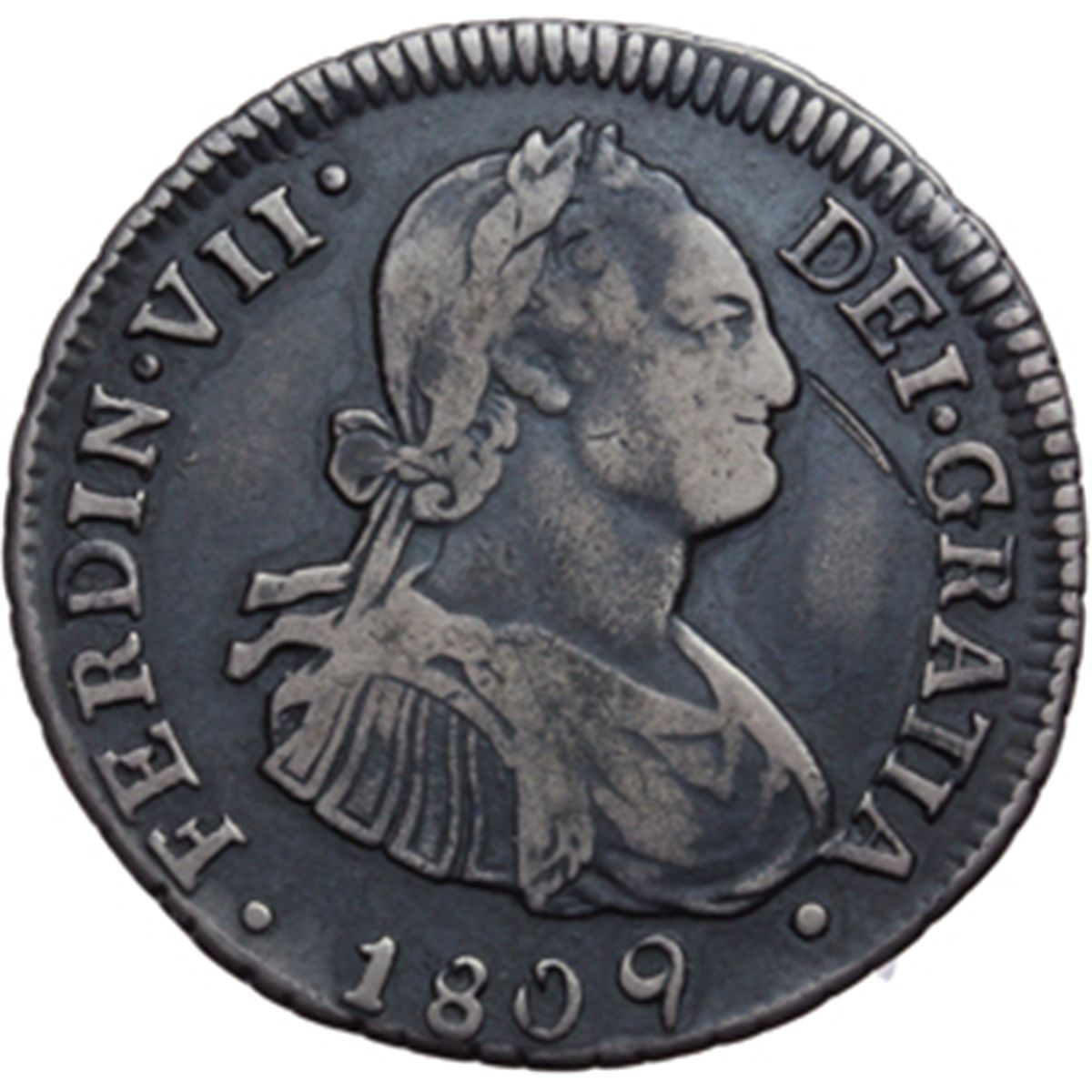 Monete e Medaglie Estere. Cile. Fernando VII (1808-1833). 2 reales 1809, Santiago. Peirv= 826. AG. g. 12.72 Graffietti al D/. BB.