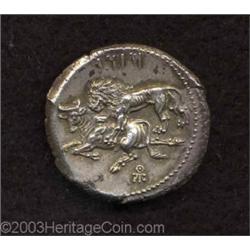 <TABLE cellSpacing=0 cellPadding=0 width="100%" bgColor=#000000 border=0><TBODY> <TR><TD width="100%"><TABLE cellSpacing=1 cellPadding=3 width="100%" border=0><TBODY><TR><TD width="100%" bgColor=#79735c><FONT face=arial color=#ffffff size=3><B>Description</B> </FONT></TD></TR><TR><TD width="100%" bgColor=#ffffff><FONT face=arial size=2><B>Cilicia, Tarsos. Mazaios, Satrap.</B></I> 361-334 B.C. AR stater (24 mm, 10.76). Baaltars seated left, head facing; holding eagle, grain ear and grape bunch in right hand, sceptre in left; Aramaic 'BLTRZ' behind, 'M' under throne / Lion bringing down bull to the left; Aramaic 'MZDI' above; monogram below. SNG Levante 106 (same dies); SNG France 335 var. Toned XF, light encrustation on the obverse. </FONT></TD></TR></TBODY></TABLE></TD></TR></TBODY></TABLE><BR><A name=PricesRealized></A><TABLE cellSpacing=0 cellPadding=0 width="100%" bgColor=#000000 border=0><TBODY><TR><TD width="100%"><TABLE cellSpacing=1 cellPadding=3 width="100%" border=0><TBODY><TR><TD width="100%" bgColor=#79735c><A name=PR><FONT face=arial color=#ffffff size=3><B>Previous Prices from Heritage Auctions</B> </FONT></A></TD></TR><TR><TD bgColor=#f6f6ed>No Prior Data Recorded </TD></TR><TR><TD bgColor=#ffffff><FONT face=arial size=1 ?>PLEASE NOTE: All prices realized reflect the final hammer price PLUS the buyer's premium in auctions that charge a buyer's premium. Each item has a notation at the top of the listing indicating whether that lot included a buyer's premium. Example: A item that sells with a final hammer price of $100 and a 20% buyer's premium will display with a price realized of $120. All information listed is intended to be as accurate as possible, but errors are possible. Please use this guide carefully and inform us of any inaccuracies. </FONT></TD></TR></TBODY></TABLE></TD></TR></TBODY></TABLE><BR><TABLE cellSpacing=0 cellPadding=0 width="100%" bgColor=#000000 border=0><TBODY><TR><TD width="100%"><TABLE cellSpacing=1 cellPadding=3 width="100%" border=0><TBODY><TR><TD width="100%" bgColor=#79735c colSpan=6><FONT face=arial color=#ffffff size=3><B>Price Guide*</B> </FONT></TD></TR><TR bgColor=#f6f6ed><TD align=middle><B>Grade</B> </TD><TD align=middle><B>Coin World<BR>(Trends)</B> </TD><TD align=middle><B>Numismedia<BR>Retail</B> </TD><TD align=middle><B>Numismedia<BR>Wholesale</B> </TD><TD align=middle><B>Coin<BR>Universe</B> </TD><TD align=middle><B>Heritage<BR>Value Index</B> </TD></TR><TR bgColor=#ffffff><TD colSpan=6><FONT size=1>*All information listed is intended to be as accurate as possible, but errors are possible. No item may be returned or refused based on this information which is provided as a service to our customers. You should contact each pricing source directly to determine the accuracy of this information. </FONT></TD></TR></TBODY></TABLE></TD></TR></TBODY></TABLE><BR><TABLE cellSpacing=0 cellPadding=0 width="100%" bgColor=#000000 border=0><TBODY><TR><TD width="100%"><TABLE cellSpacing=1 cellPadding=3 width="100%" border=0><TBODY><TR><TD width="100%" bgColor=#79735c><FONT face=arial color=#ffffff size=3><B>Population Guide</B> </FONT></TD></TR><TR bgColor=#ffffff> Important notice: Heritage usually auctions material at the rate of 200-250 lots per hour. On some occasions eBay Live bid software or the Internet may not be able to keep up with the pace of the auction. We recommend placing a realistic absentee bid now as insurance to avoid disappointment. Occasionally the auctioneer may eliminate or reject an eBay Live bid, and the auctioneer may also reopen a lot after the close of the eBay live bidding (usually because we missed an audience bid), and may reject your bid even if it shows you as the winning bidder. By bidding via eBay Live, you agree that Heritage may award the lot to another bidder at its sole discretion under the circumstances described above or any other reasonable circumstances. Also please note that all Heritage lots purchased through eBay Live carry a 20% Buyer's Premium. Please make sure you read the Terms and Conditions before you bid.</TD></TR></TBODY></TABLE></TD></TR></TBODY></TABLE>