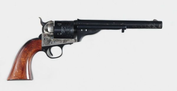 7 1/2'' Barrel, wood grip, blue finish. Engraved by W. L. Ormsby, New York. "Engaged 16 May 1843". In working condition with light rust on surface.