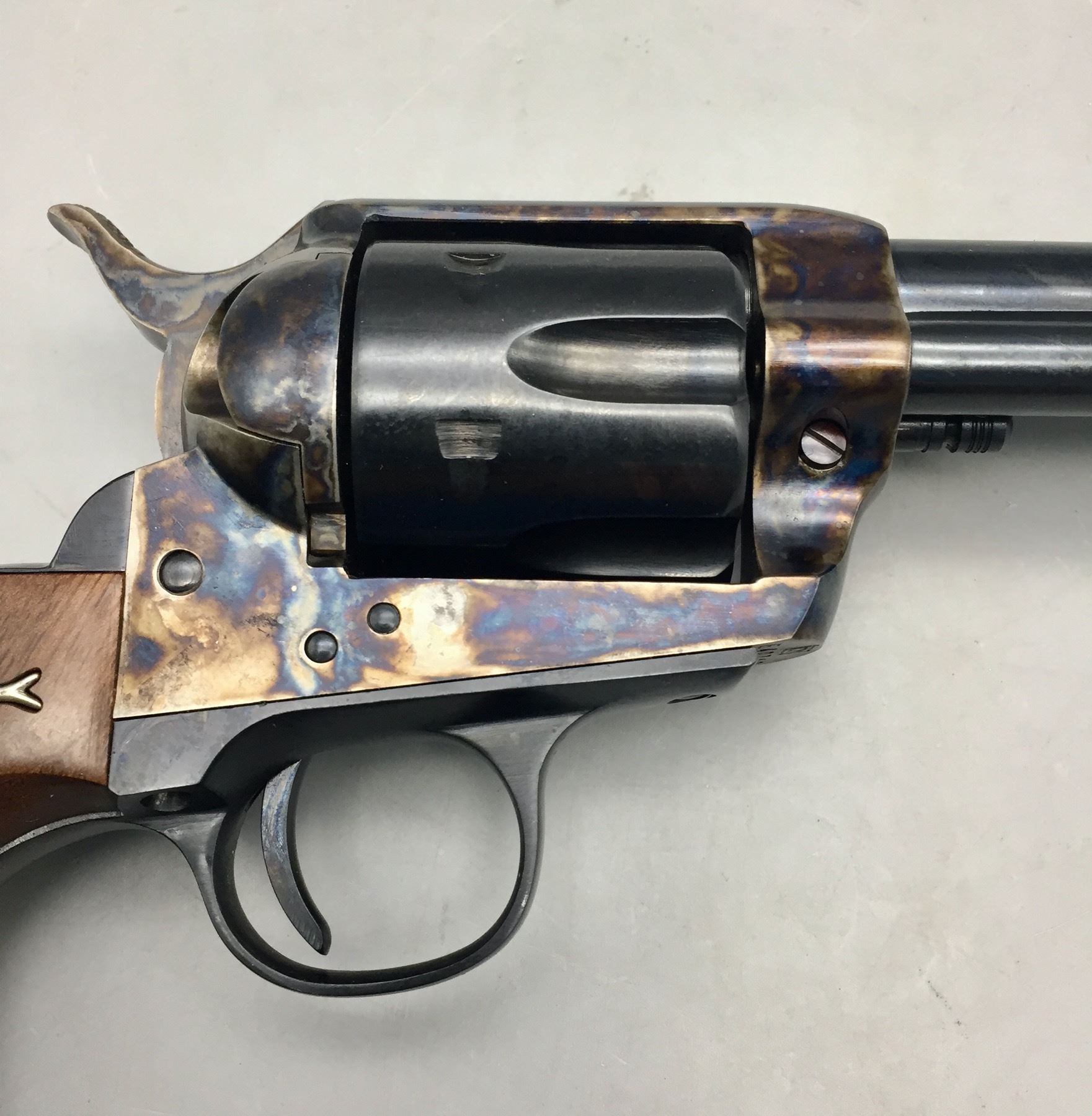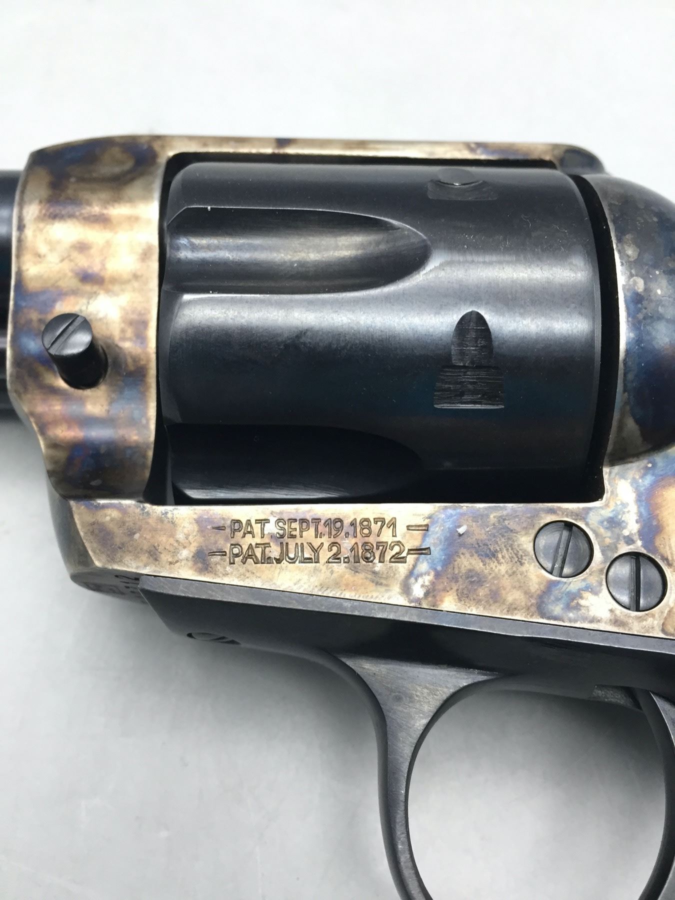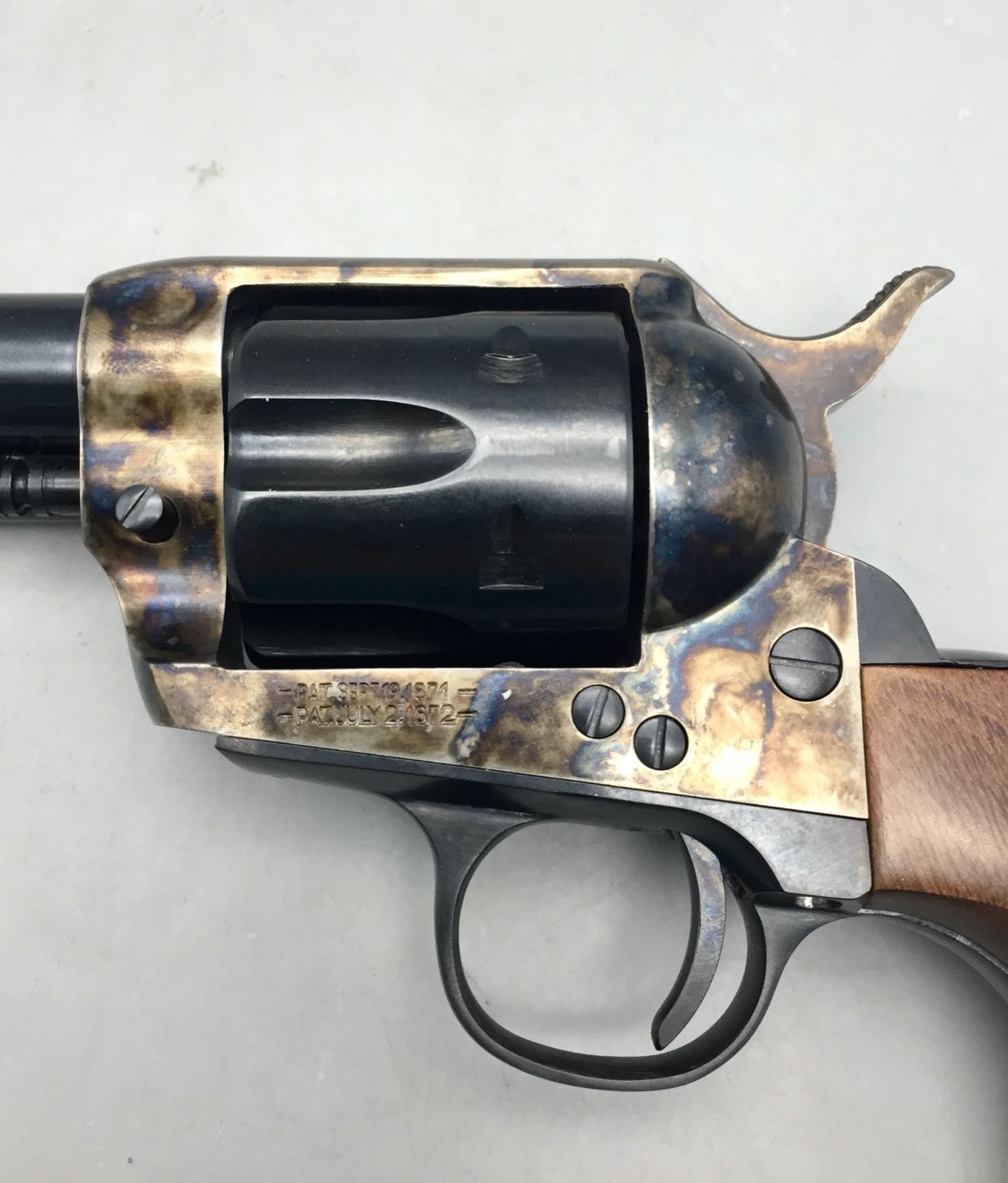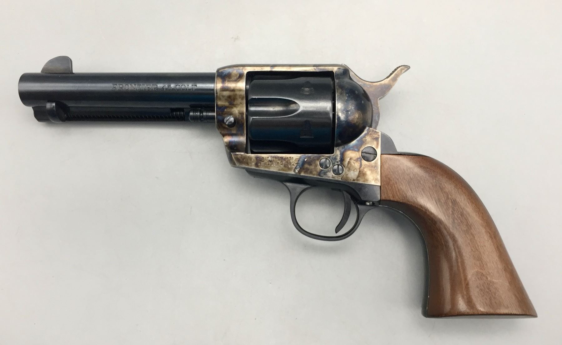 Description: For sale in this lot is a Cimarron Firearms “Man With No Name†.45 LC caliber revolver in its original packaging. Has the inlay snake on the right grip. Appears to be in unfired condition. Maker: Cimmaron Firearms, Co. Approx. Age: Vintage. Serial No. E40712. Size: Barrel measures 4-3/4†with an overall length of 11-3/8â€. Condition: Good for its age, normal wear expected. Please look closely at the pictures - they are an important part of our description. Shipping: There will be a $15 handling / packaging fee for shipping this lot. The actual cost of postage will be added on top of that. *****This firearm REQUIRES an FFL Transfer*****