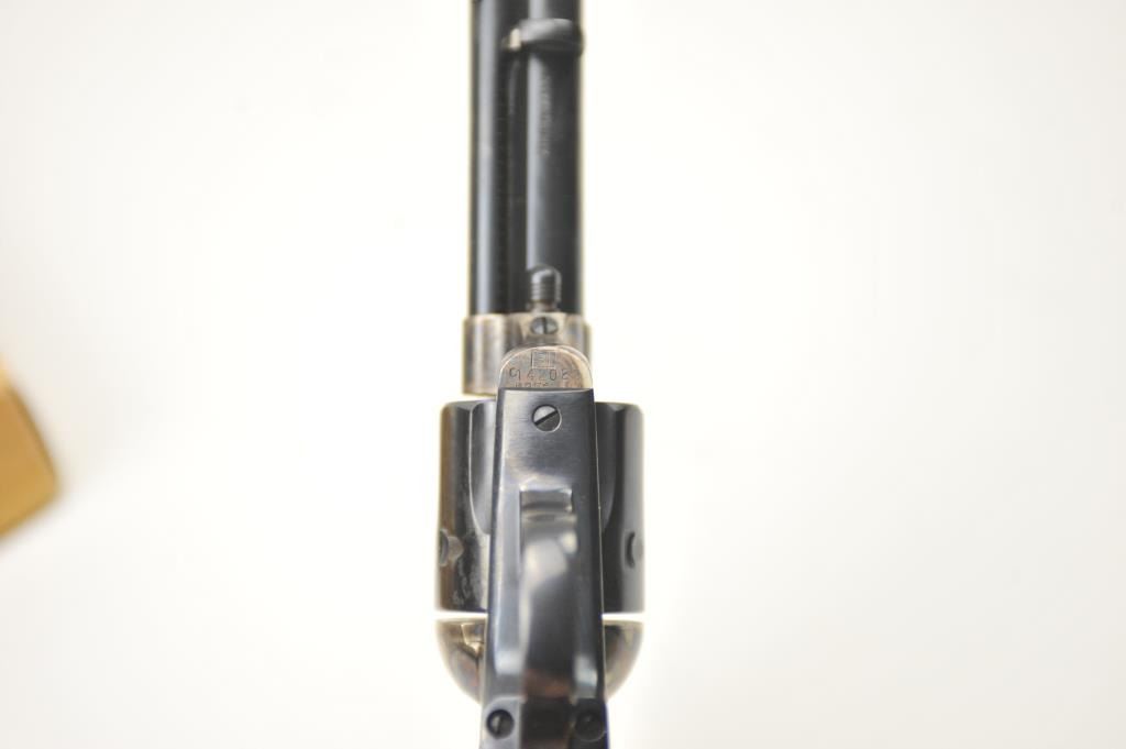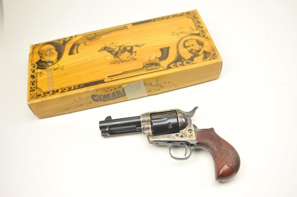 Cimmaron Firearms Texas Italian made Single Action Revolver in .45 colt caliber marketed as Thuderer with a 3 ½” barrel, ejector rod and “Birds head” shaped checkered wood grips. Black powder style patent dates and screw in frame. 98%-99% showing minor use and firing. Mechanically sound. (Modern/PPT) Est.: $250-$500