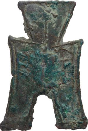 Mondo Orientale. Cina. Stati Combattenti (476-221 a.C.). Moneta a forma di vanga con manico piatto e piedi quadrati (350-250 a.C.). An Yang. Hartill 3.182. AE. qSPL.