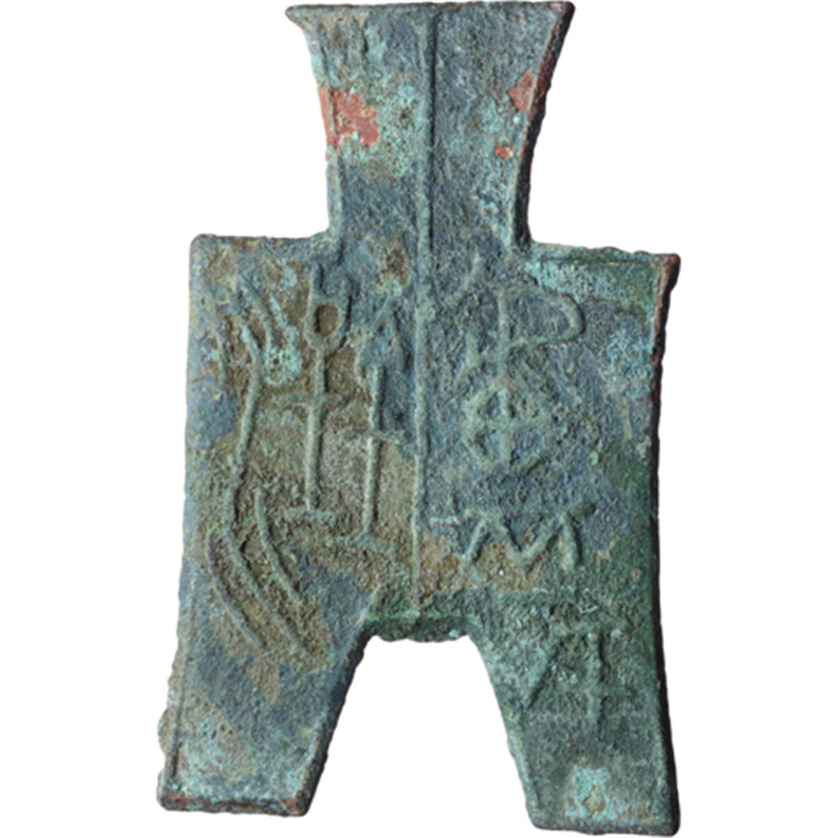 Mondo Orientale. Cina. Stati Combattenti (476-221 a.C.). Moneta a forma di vanga dai piedi quadrati, stato di Liang o Han, 350-250 a.C. D/ Yu Jin Nie. Hartill 3.173. AE. g. 25.15 mm. 72.30 RRR. qSPL.