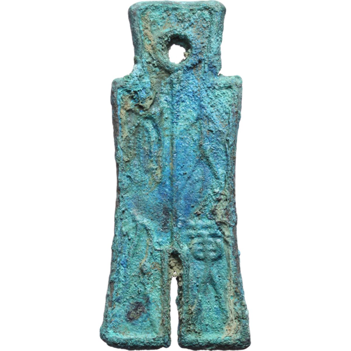 Mondo Orientale. Cina. Wang Mang (7-23 d.C.). Moneta a forma di vanga, valore 1000, 10-14 d.C. D/ Da Bu Heng Qian (= vanga grande, peso 1000). Hartill 9.29. AE. g. 15.49 mm. 51.90 RR. BB.