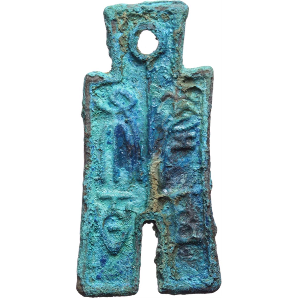 Mondo Orientale. Cina. Wang Mang (7-23 d.C.). Moneta a forma di vanga, valore 500, 10-14 d.C. D/ Cha Bu Wu Bai (= vanga servitrice, 500). Hartill 9.24. AE. g. 11.31 mm. 42.81 RR. BB.
