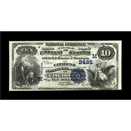 <B>Cincinnati, OH</B></I> - $10 1882 Value Back Fr. 577 <B>The Citizens NB</B></I> Ch. #(M)2495<BR>A <B>Choice About Uncirculated</B></I> $10 Value Back. Tonight's offering has all the flash and visual appeal of a fully uncirculated note and is, in fact, listed as "CU" in the Kelly census. While it does have a couple of light storage folds, we must admit that we've seen notes not the equal of this offered and sold as fully uncirculated or better. Plan on a bid higher than our purely technical grade might imply if you'd like to see this attractive Value Back enhance the stature of your collection.<BR><I>From The Bill and Kathy Stella Currency Collection</B></I><BR><BR><b>Shipping:</b> Coin/Currency (<a target="_blank" href="http://www.heritageauctions.com/common/shipping.php">view shipping information</a>)