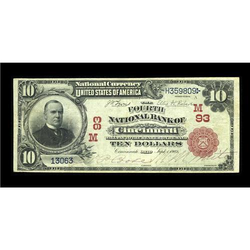 <B>Cincinnati, OH</B></I> - $10 1902 Red Seal Fr. 613 <B>The Fourth NB</B></I> Ch. # (M)93<BR>We last sold this <B>Very Fine</B></I> $10 Red Seal in 2000 for $525. The stamped officers' signatures are still present and the centering is superior.<BR><BR><b>Shipping:</b> Coin/Currency (<a target="_blank" href="http://www.heritageauctions.com/common/shipping.php">view shipping information</a>)