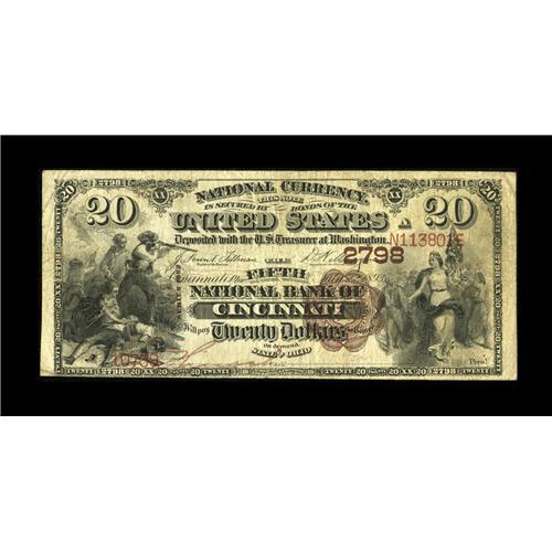 <B>Cincinnati, OH</B></I> - $20 1882 Brown Back Fr. 501 <B>The Fifth NB</B></I> Ch. # 2798<BR>This <B>Fine+</B></I> $20 Brown Back is only the second note of its type and denomination to be traced from here with this title. As such, it will prove of considerable interest to Buckeye State specialists. We anticipate a final realization in the range of...<BR><I>From The Bill and Kathy Stella Currency Collection</B></I><BR><BR><b>Shipping:</b> Coin/Currency (<a target="_blank" href="http://www.heritageauctions.com/common/shipping.php">view shipping information</a>)