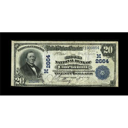 <B>Cincinnati, OH</B></I> - $20 1902 Date Back Fr. 642 <B>The Second NB</B></I> Ch. # (M)2664<BR> The appearance is excellent overall with decent signatures and a midnight blue overprint. <B>Very Fine.</B></I><BR><BR><b>Shipping:</b> Coins & Currency (<a target="_blank" href="http://www.heritageauctions.com/common/shipping.php">view shipping information</a>)