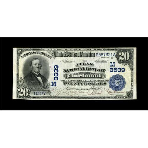 <B>Cincinnati, OH</B></I> - $20 1902 Date Back Fr. 644 <B>The Atlas NB</B></I> Ch. # (M)3639<BR> Perfectly original paper retains solid signatures and bold embossing. <B>Very Fine.</B></I><BR><BR><b>Shipping:</b> Coins & Currency (<a target="_blank" href="http://www.heritageauctions.com/common/shipping.php">view shipping information</a>)