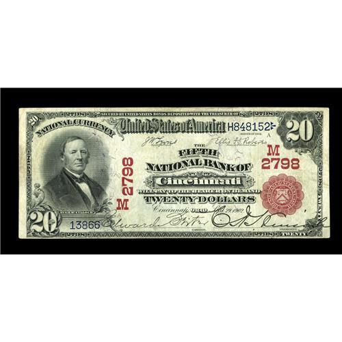 <B>Cincinnati, OH</B></I> - $20 1902 Red Seal Fr. 639 <B>The Fifth NB</B></I> Ch. # (M)2798<BR>This is one of only two $20 Red Seals listed in the census from here, and considerably the nicer of the pair as well. <B>Very Fine.</B></I><BR><I>From The Bill and Kathy Stella Currency Collection</B></I><BR><BR><b>Shipping:</b> Coin/Currency (<a target="_blank" href="http://www.heritageauctions.com/common/shipping.php">view shipping information</a>)