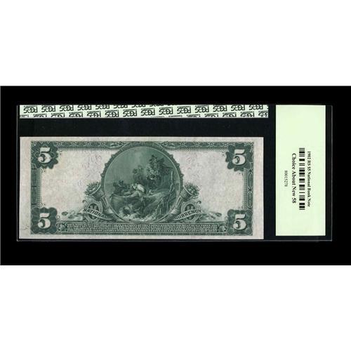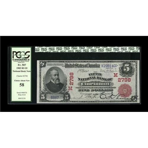 <B>Cincinnati, OH</B></I> - $5 1902 Red Seal Fr. 587 <B>The Fifth NB</B></I> Ch. # (M)2798<BR>A bright and well printed Red Seal assigned a grade of <B>Choice About New 58</B></I> by PCGS.