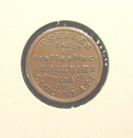 Peebles Dealer in Staple & Fancy Groceries" Cincinnati Ohio. 165EJ-3a R3 Civil War Token. Brown AU.