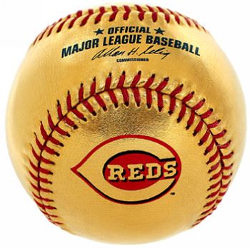 This Cincinnati Reds Logo 24 Karat Gold Leather Baseball is a collectors dream ball. This high quality collectible will undoubtedly be at the center of every conversation! The 24-karat gold is artfully infused into the leather, which is then used to build the baseball to precise Major League standards. This process fills the leather with 24-karat gold yet leaves the leather feeling soft and untreated. This ball is a must-have for new and seasoned collectors.