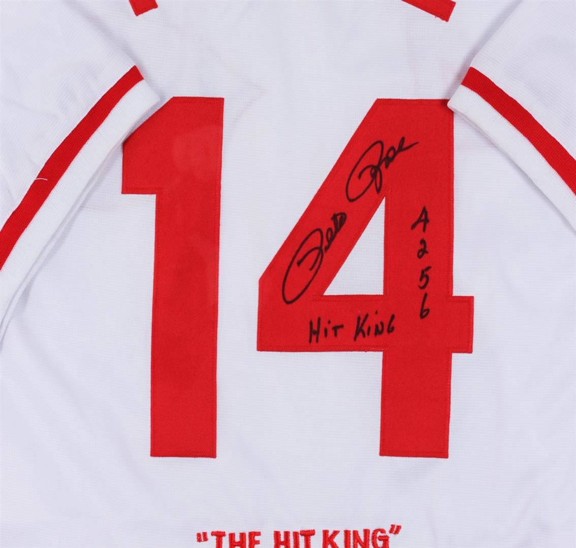 Cincinnati Reds Pete Rose Autographed Jersey With Stats.