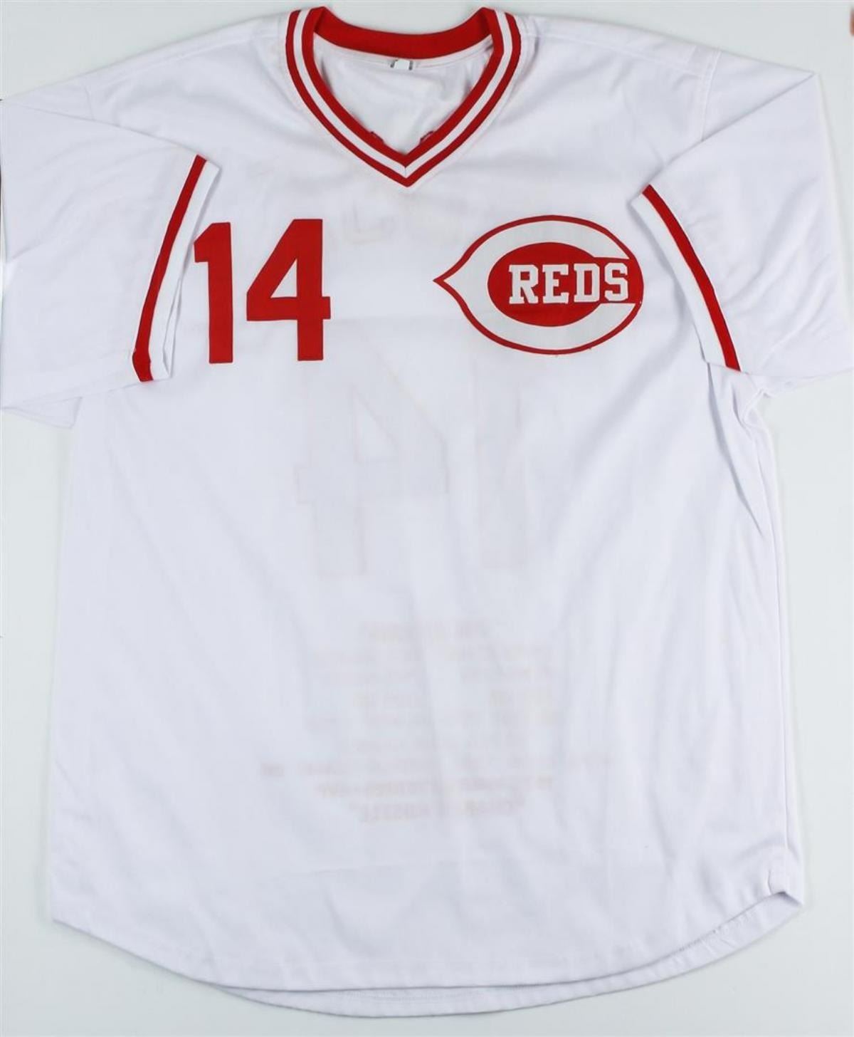 Cincinnati Reds Pete Rose Autographed Jersey With Stats. Pete Rose had 4256 hits in his 24 year career with the Reds, Phillies, and the Expos. Pete won 3 World Series Titles. He won in 1975 and 1976 with the Cincinnati Reds and he won his third in 1980 with the Philadelphia Phillies. Comes with Certificate of Authenticity!