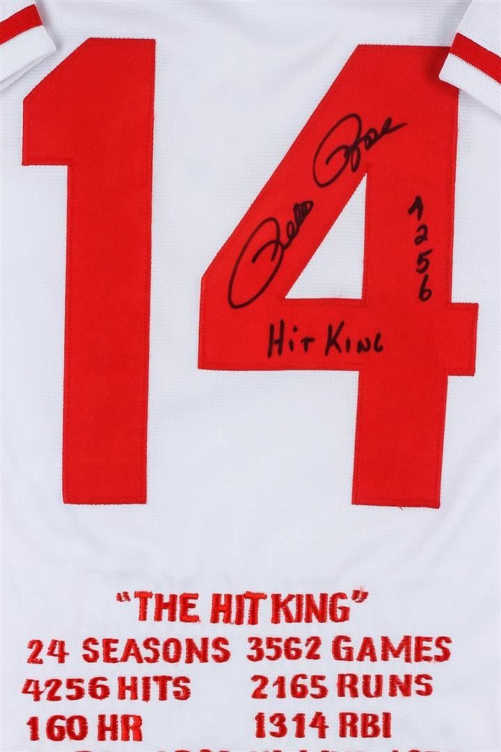 Cincinnati Reds Pete Rose Autographed Jersey With Stats. Pete Rose had 4256 hits in his 24 year career with the Reds, Phillies, and the Expos. Pete won 3 World Series Titles. He won in 1975 and 1976 with the Cincinnati Reds and he won his third in 1980 with the Philadelphia Phillies. Comes with Certificate of Authenticity!