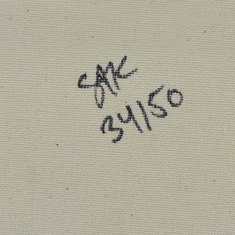 "Cinco Francs and Honderd Guilden" is a hand painted, hand pulled limited edition silkscreen on canvas by Andy Warhol protege, Steve Kaufman (1960-2010). This piece is Numbered 34/50 and hand signed inverso by the artist. This piece comes gallery wrapped. As is common with Kaufman's works, this piece may have perceived minor flaws, but is in overall good condition. Measures approx. 15" x 18" (image).