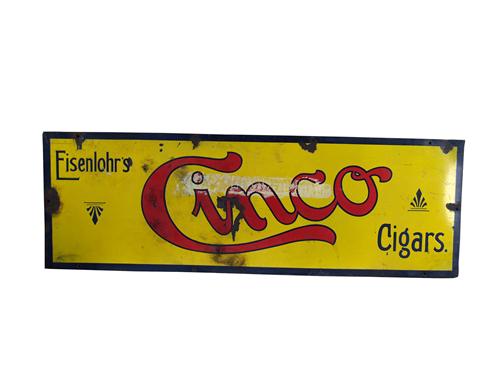 Cinco Porcelain Cigar Sign Has chips & flakes 12" x 36"