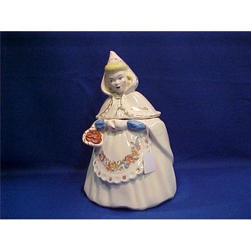 This Cookie Jar is in Very Cute . There are 2 small chips on the inside of the lid and some crazing on the bottom . Price reduced because of these factor,s . Other wise in great condition .