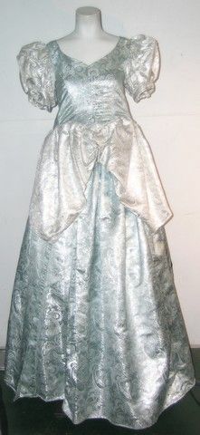 From New York costume designer Frankie Stein comes this custom made Cinderella costume. This is a silver colored dress, with a white under dress. Ms. Stein's work has been featured on stage, television, film & print, and she successfully owns and operates "Frankie Steinz" costume shop in New York. As a freelance costume designer, she later moved her business to New York City where her many clients include ABC, Sony, Disney and HBO, and celebrities Robert De Niro, Billy Joel and Dolly Parton, to name a few. Her work has been featured in The New York Times, Time Out magazine and People Online, and has been seen on The David Letterman Show, The View, Saturday Night Live, The Rosie O'Donnell Show, and Everybody Loves Raymond, and she is credited on the major Academy Award winning film 'Eternal Sunshine of the Spotless Mind.