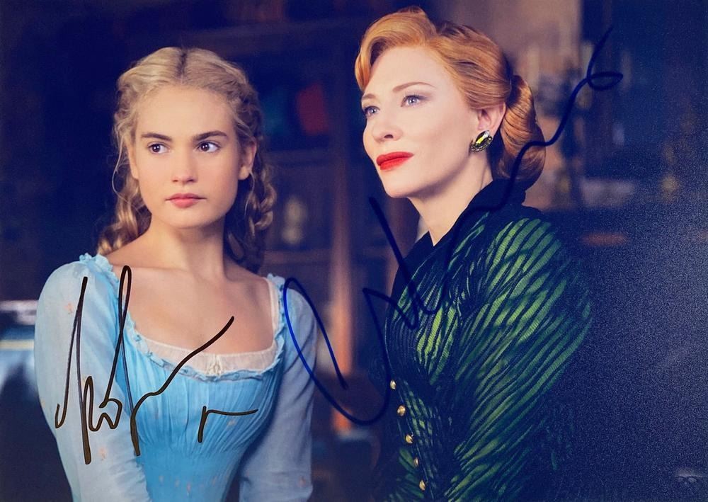 Cinderella Lily James and Cate Blanchett facsimile signed movie photo. 8x10 inches. This item is a reprint of an original autograph