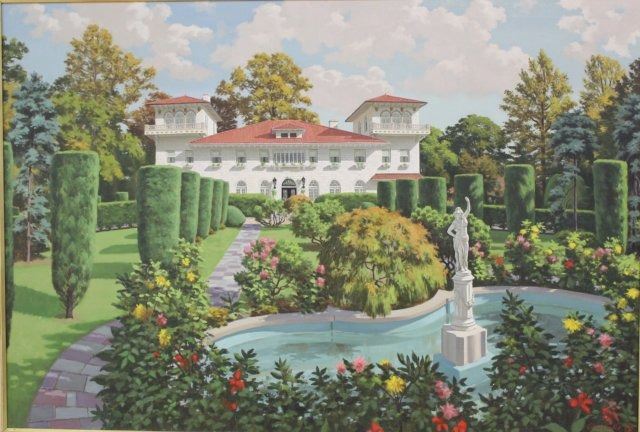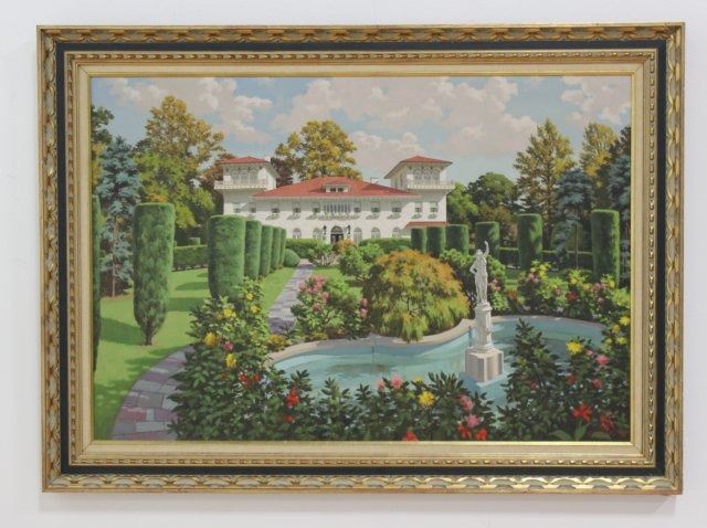 Oil on canvas. Signed and dated 1966 lower right. Approx. 30" H x 44" W unframed, 37" H x 51" W framed. The Gloria estate was modelled after this villa. From an Edgewater, NJ estate.