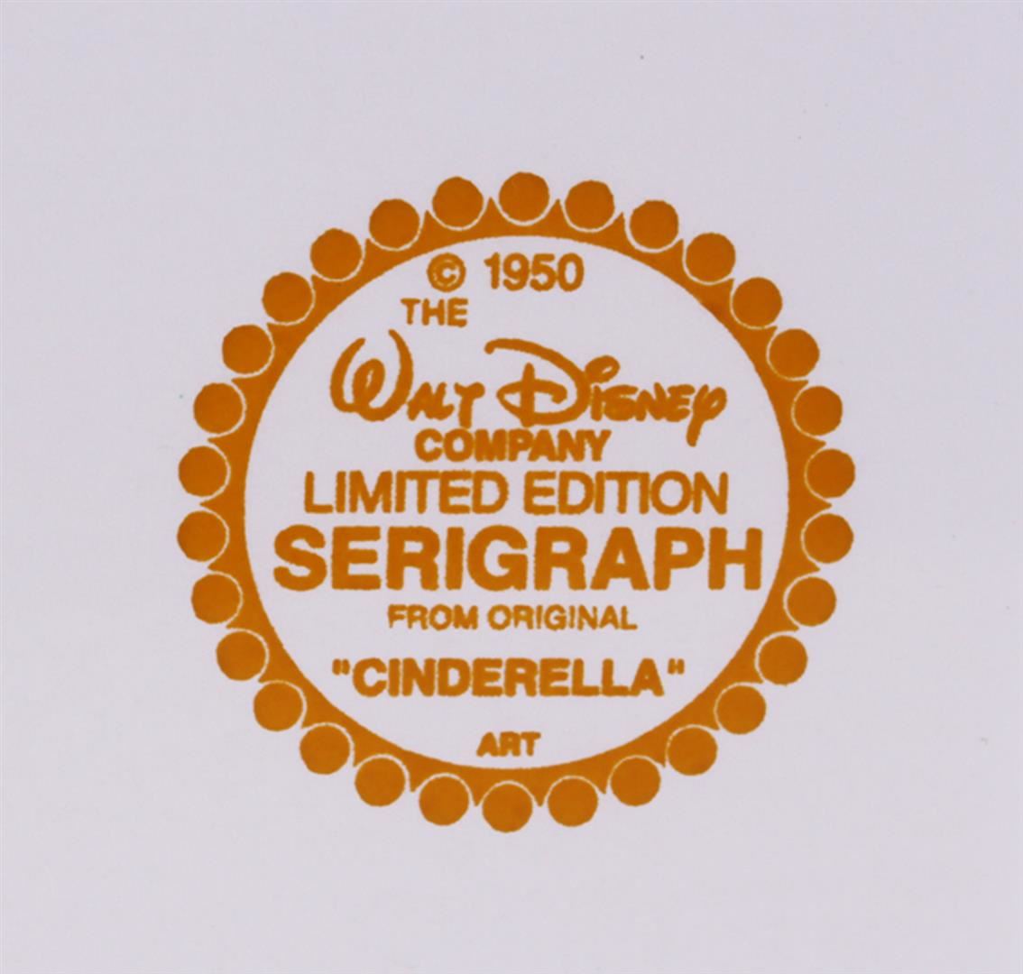 The Walt Disney Company Limited Edition Serigraph From Original "Cinderella" Art. Includes an authentication seal from Walt Disney in the lower right corner. Measures approximately 11x14 inches.