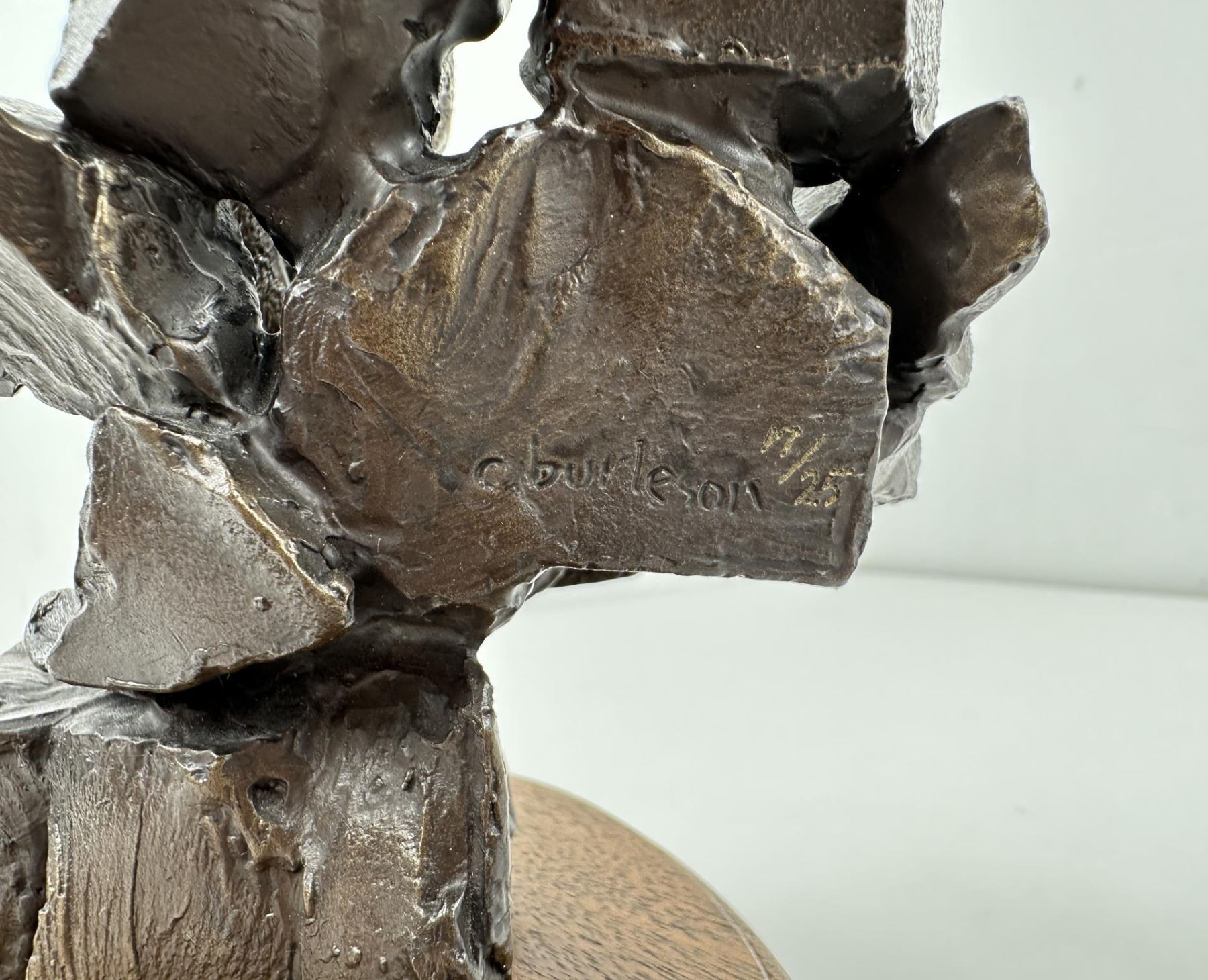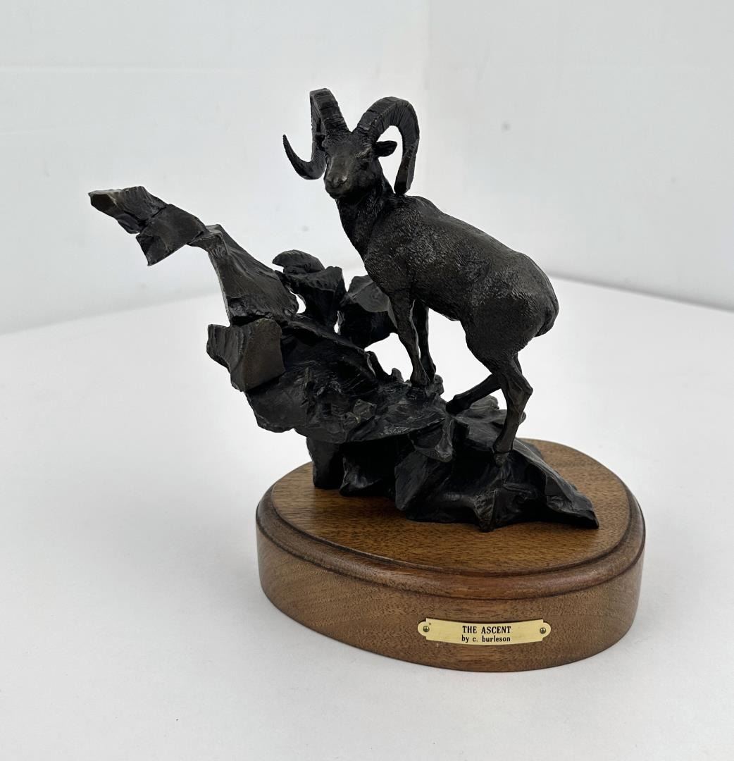 8 1/4" tall, 8 1/8" long, 5 5/8" wide. Cindy Burleson (Born 1958) is active/lives in Texas. Cindy Burleson is known for Wildlife and western themed figure and animal sculpture, collaborative art. Cindy and Terry Burleson have been creating bronze sculptures together for 40 years based out of Austin, Texas. Their recent art installations include life-size statues for fire departments, city halls, stadiums, libraries, hospitals, churches, and individuals. They can create a custom sculpture for your establishment or home. Subjects typically requested include: veterans memorials, historical events, commemorative city events and organizations, and interactive city beautification projects, and fountains. Many individuals request life-size portraits of their children and pets and architectural/sculptural elements for entryways and mantles. Bronze sculptures are suitable for indoor and outdoor environments.