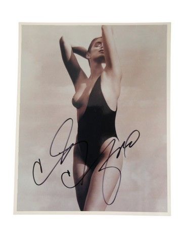 For the more "mature" collector, this is an artful topless color photo of Cindy Crawford, signed by Crawford herself. (8x10).