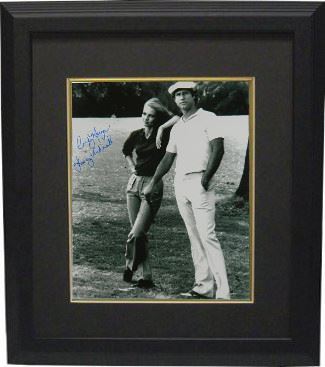 Caddyshack is one of the most beloved sports movies in American history. Nearly 35 years later, it's impossible to step onto a golf course without someone quoting the film. The film has garnered a large cult following and has been hailed by many publications, such as Time and ESPN, as one of the funniest sports movies of all time. CaddyShack Actress Cindy Morgan has personally hand-signed this 16x20 B&W Photo from Caddyshack (w/ Chevy Chase) and Inscribed it "Lacey Underall". Schwartz Sports Hologram and Certificate of Authenticity from Athlon Sports. Custom Black Mat and Premium Black Color Framed as shown.