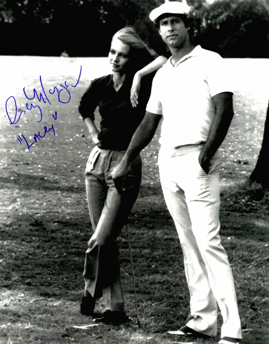 Cindy Morgan signed Caddyshack black and white 11x14 photo standing next to Chevy Chase with 'Lacey' inscription. Item comes with a Schwartz Sports Memorabilia numbered tamper-proof hologram and Certificate of Authenticity which can be verified online.
