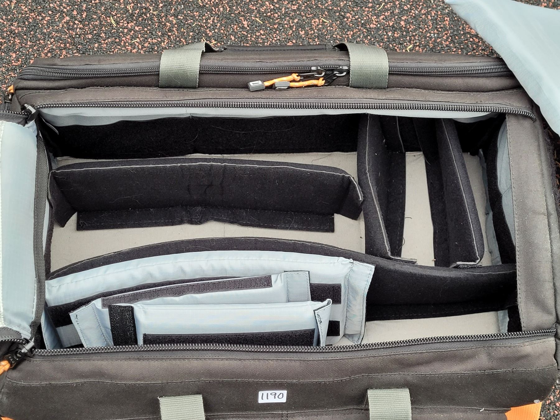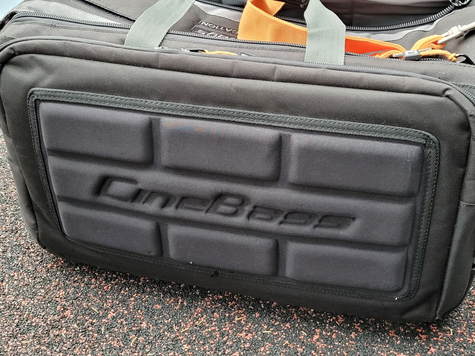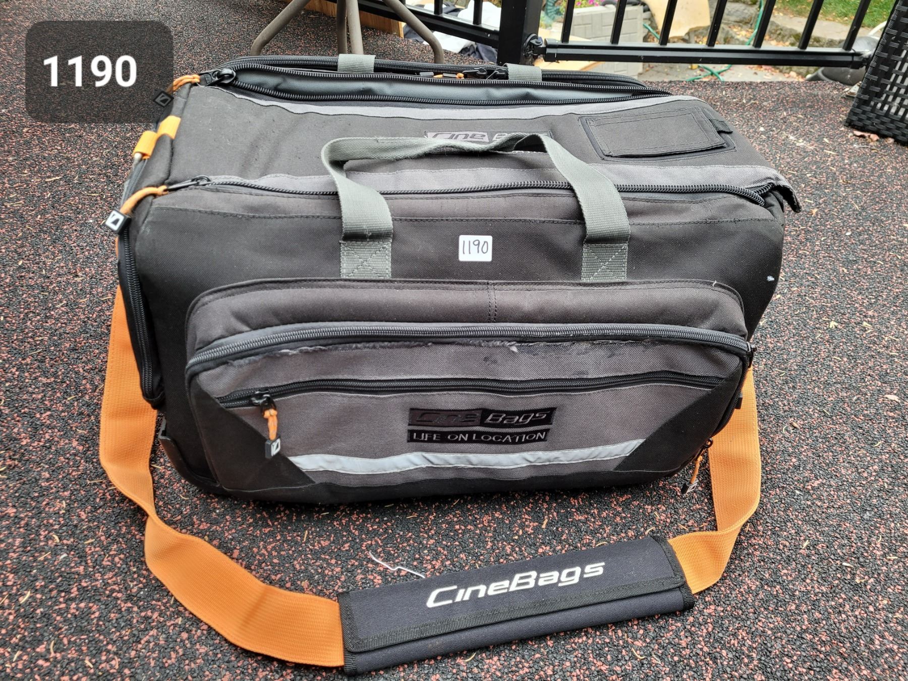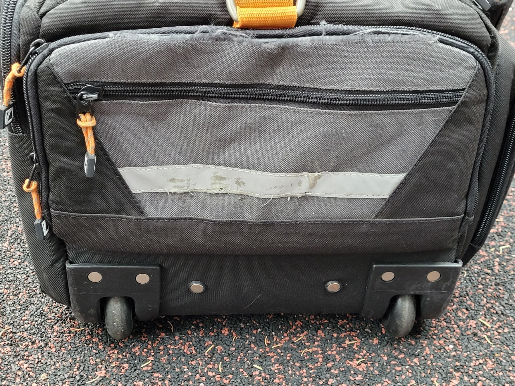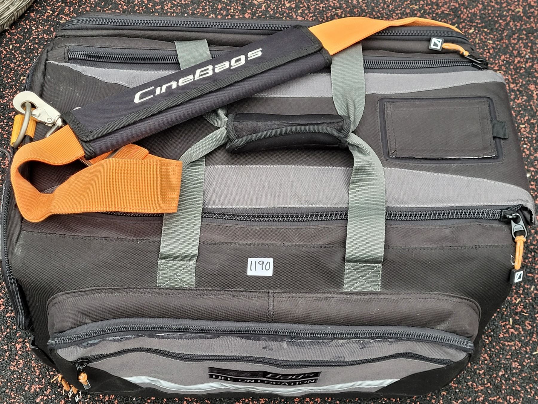CineBags Large professional camera carrying case on wheels, with cushioned dividers. Some fraying.
