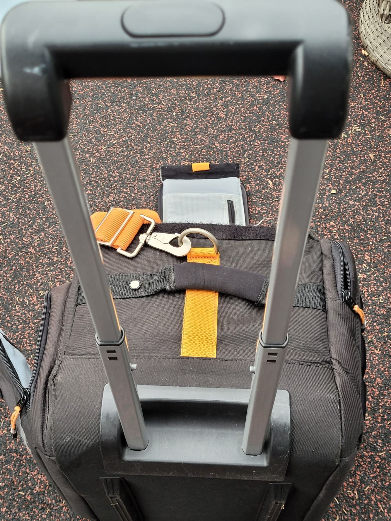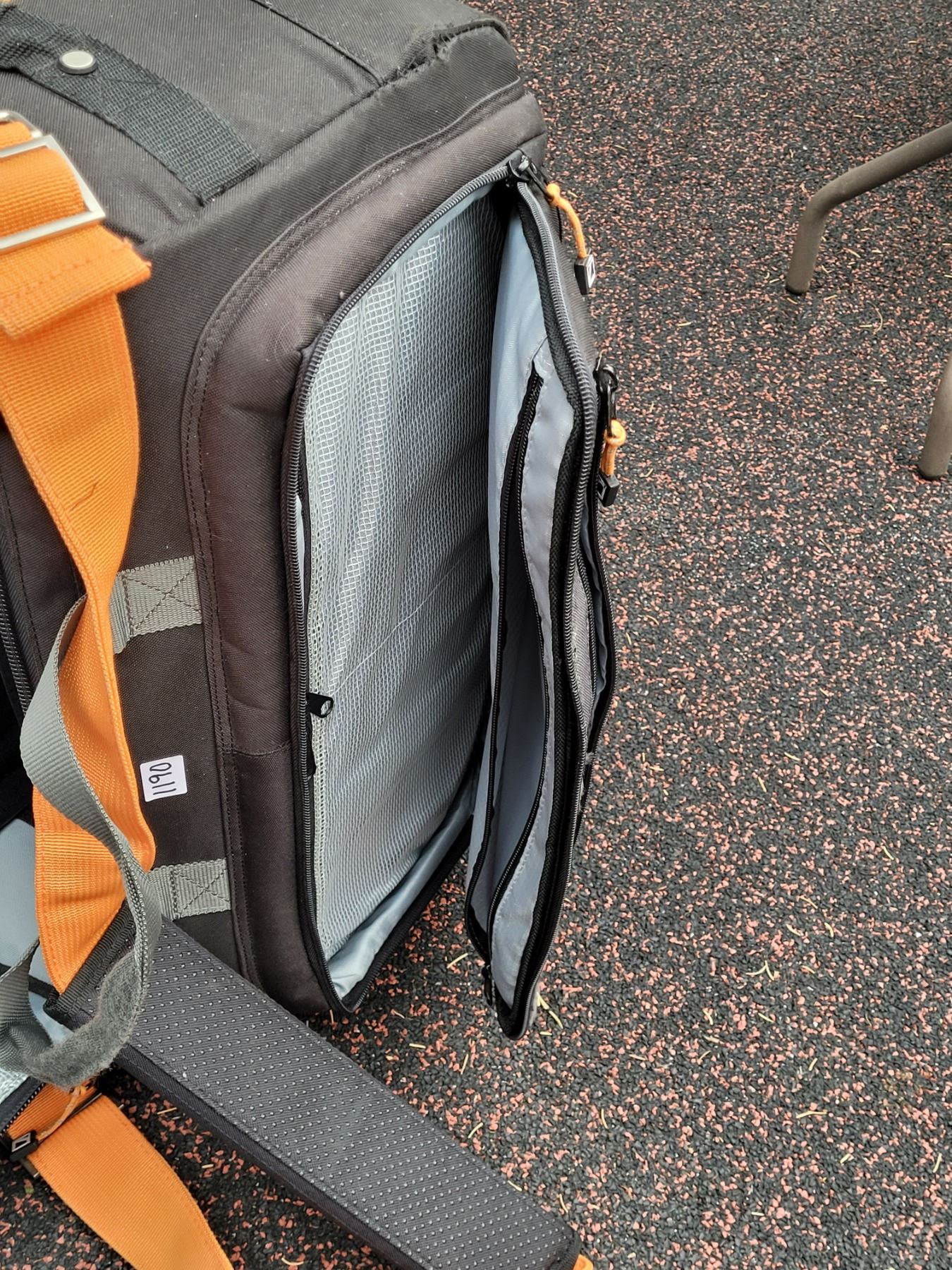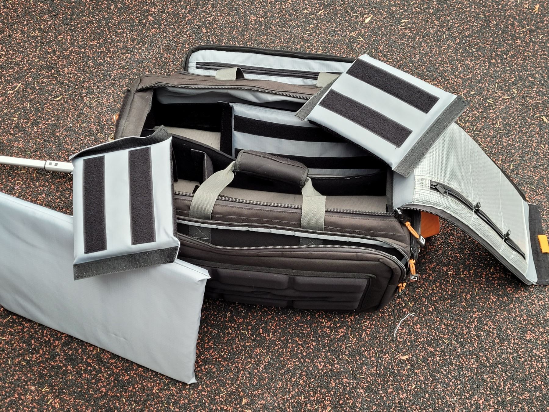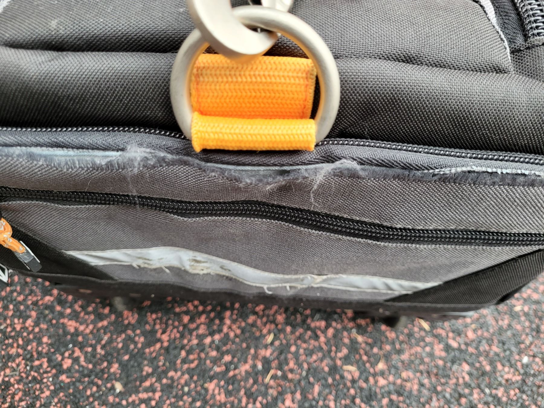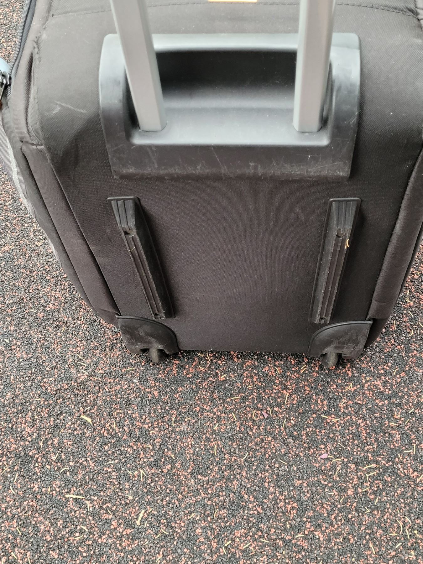 CineBags Large professional camera carrying case on wheels, with cushioned dividers. Some fraying.